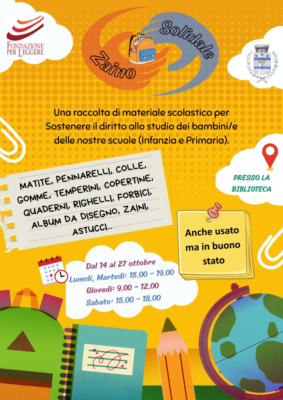 La Biblioteca di Bubbiano con il patrocinio del Comune, oraganizzano per la II edizione l'iniziativa intitolata: "Zaino Solidale".